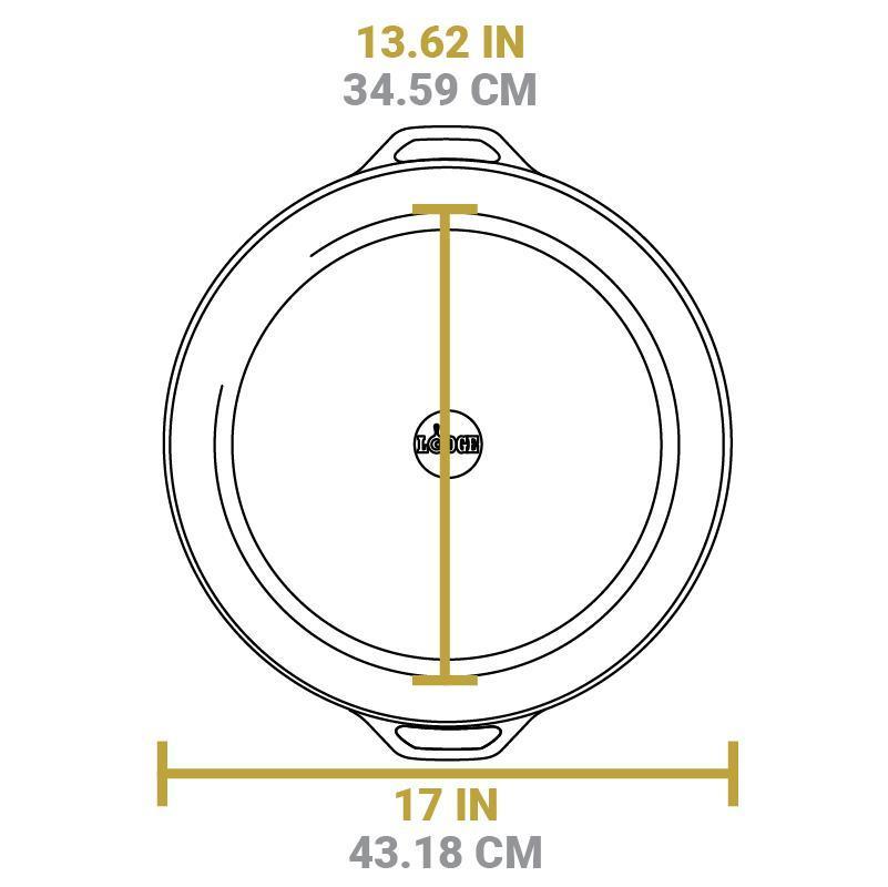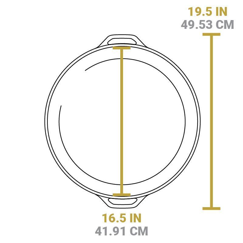 La Sarten hierro fundido de 43 cms con Asas Dobles ofrece una generosa superficie de cocción que puede manejar cualquier creación culinaria.