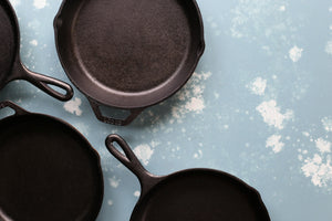 Ya sea que tengas una sartén de hierro fundido curado, una olla holandesa, una sartén grill o utensilios para hornear, cada pieza de nuestros utensilios de cocina de hierro fundido sigue exactamente los mismos pasos para la limpieza.