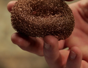 Si tiene un Borrador de Óxido Lodge, utilícelo en este momento para eliminar fácilmente el óxido superficial de las ollas de hierro fundido. Está hecho de caucho y carburo de silicio -esencialmente papel de lija sin el papel- unidos en un ladrillo sólido para un fácil manejo. Después de utilizar el borrador de óxido, elimine a fondo todo el material residual y continúe con el proceso de restauración que se detalla a continuación.